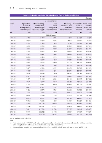 Table 1.3 A. Real Gross Value Added at Factor Cost by Industry of Origin